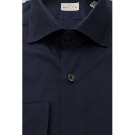Bagutta Blue Cotton Men Shirt Slim Fit with French Collar