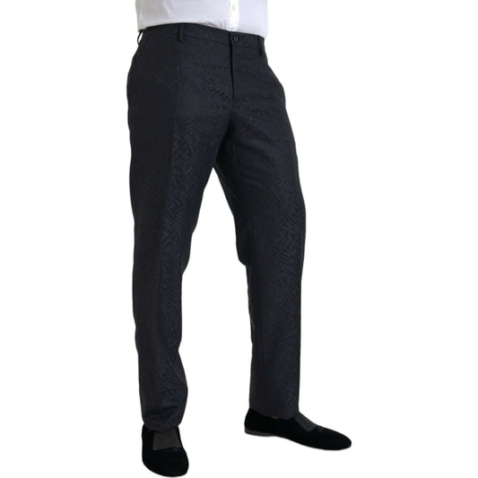 Dolce & Gabbana Blue Brocade Wool Skinny Men Dress Pants