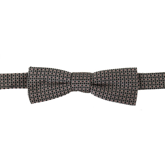 Dolce & Gabbana Black White Geometric 100% Silk Adjustable Accessory Tie