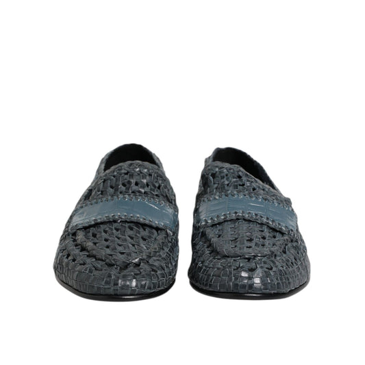 Dolce & Gabbana Blue Woven Leather Slip On Loafers Shoes
