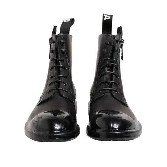 Dolce & Gabbana Brown Black Leather Boots Zipper Lace Up Shoes