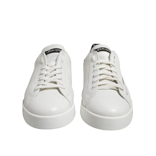 Dolce & Gabbana White Black Logo Low Top Leather Sneakers Shoes