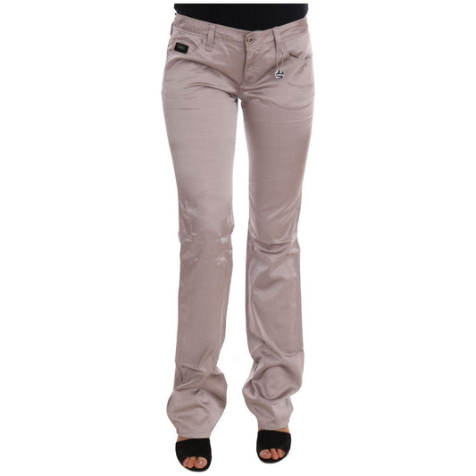 Just Cavalli Beige Cotton Mid Waist Straight Trousers Pants