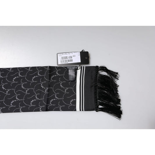 Dolce & Gabbana Black Patterned Skinny Fringes Shawl Scarf