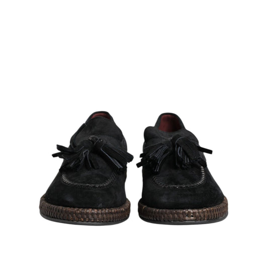 Dolce & Gabbana Black Suede Tassel Embellished Loafers Shoes