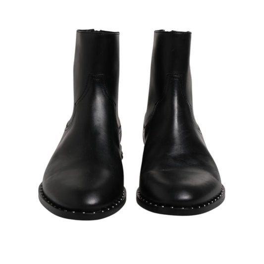 Dolce & Gabbana Black Leather Logo Ankle Boots Studded Shoes