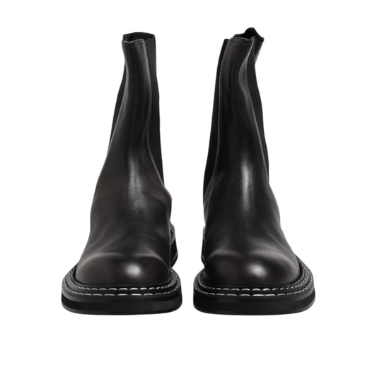 Dolce & Gabbana Black Leather Mid Calf Boots Flats Shoes