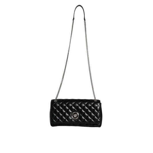 Versace Black Quilted Lambskin Leather Crossbody Shoulder Bag