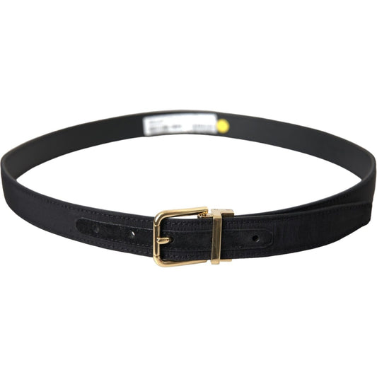 Dolce & Gabbana Black Gros Grain Gold Metal Buckle Belt Men