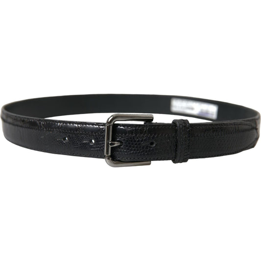 Dolce & Gabbana Black Exotic Leather Silver Metal Buckle Belt