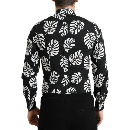 Dolce & Gabbana Black Leaf Cotton Men Formal GOLD Dress Shirt