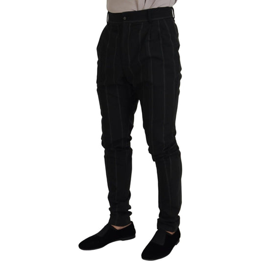 Dolce & Gabbana Black Striped Men Trousers Cotton Pants