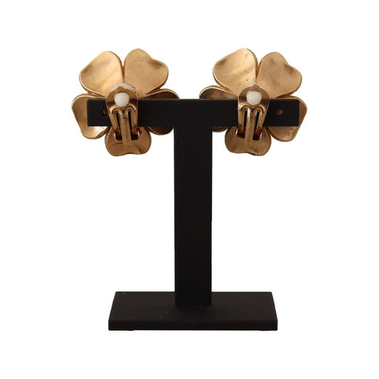 Dolce & Gabbana Gold Tone Maxi Faux Pearl Floral Clip-on Jewelry Earrings