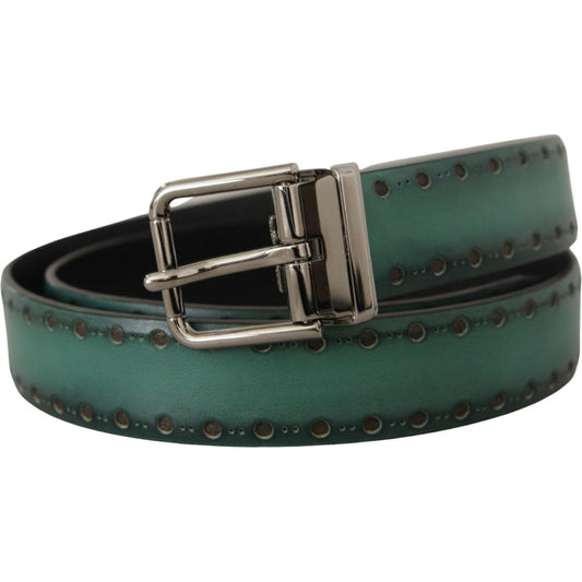 Dolce & Gabbana Green Perforated Leather Brass Metal Belt