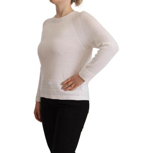 Alpha Studio White Long Sleeves Crewneck Pullover Sweater