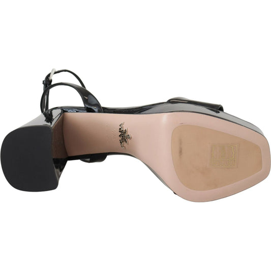 Prada Black Patent Sandals Ankle Strap Heels Leather