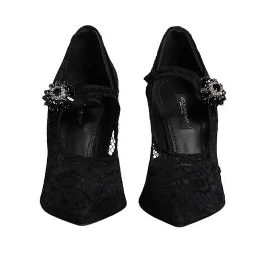 Dolce & Gabbana Black Lace Crystals Mary Jane Pumps Shoes