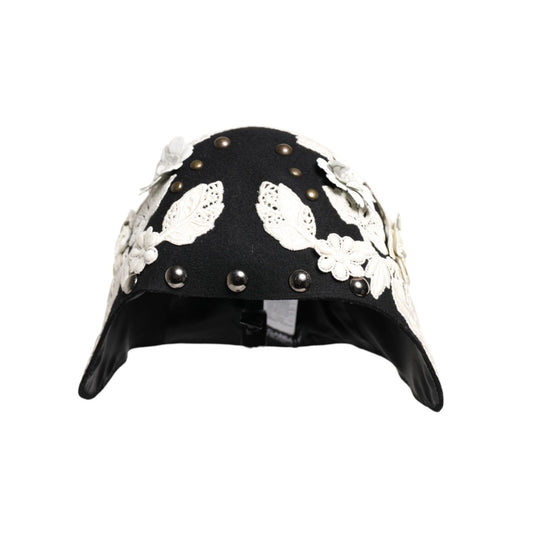 Dolce & Gabbana Black Wool White Floral Gold Leaf Cloche Hat