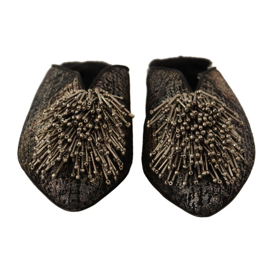 Paola D'Arcano Gold Jacquard Leather Embellished Slip On Shoes