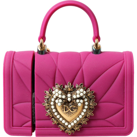 Dolce & Gabbana Pink Silicone Devotion Heart Bag Gold Chain Airpods Case