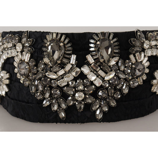 Dolce & Gabbana Black Silk Brass Crystal Embellished Waist Belt