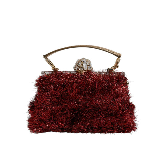 Dolce & Gabbana Red Gold Chain VANDA Tinsel Crystals Evening Clutch Bag