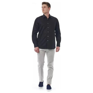 Dress to impress with Bagutta’s sophisticated Regular Fit Shirt, a timeless addition to your wardrobe. Crafted with the utmost care, this shirt boasts a sharp Italian collar that commands attention and exudes confidence. Designed for the cosmopolitan man, it seamlessly shifts from business meetings to evening soirées. Featuring pristine cotton material, it offers supreme comfort and durability, while its black hue adds a touch of classic elegance to any ensemble. Step out in style and elevate your fashion game with Bagutta.