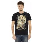 Elevate your everyday ensemble with this sleek, Trussardi Action tee. Boasting a sharp front print, this black T-shirt is the epitome of bold street fashion. Crafted for the modern man, its short sleeves and classic round neck serve up comfort without compromising on style. Get ready to seize the streets with unstoppable charisma.