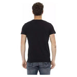 Experience the effortless sophistication of the Trussardi Action T-shirt. The perfect blend of urban edge and high-fashion finesse, this short sleeve cotton-viscose blend tee is as comfortable as it is stylish. Stand out with the bold front print, and embrace the quality craftsmanship straight from Bangladesh. Make a statement in black – a versatile addition to your fashion-forward wardrobe.