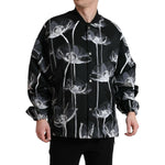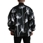 Dolce & Gabbana Black Floral Print Wool Button Down Bomber Jacket