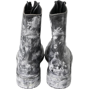 Dolce & Gabbana Black Gray Leather Mid Calf Boots Shoes