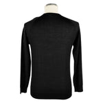 Unveil your impeccable taste with the Emilio Romanelli crewneck sweater, masterfully crafted from a sumptuous blend of Merino Wool, Cashmere, and Silk. This Italian-made piece embodies luxury, offering both unparalleled comfort and a touch of sophistication. Its long sleeves and neatly finished cuffs promise to keep you comfortably chic in any setting, while the timeless black hue ensures versatility in your wardrobe. Embrace the pinnacle of style with this quintessential addition.