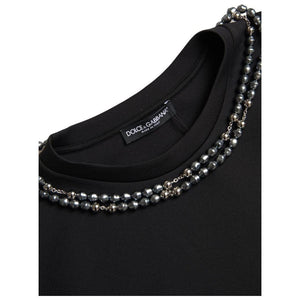 Dolce & Gabbana Black Necklace Embellished Polyester T-shirt