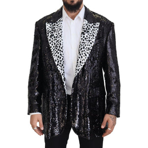 Dolce & Gabbana Black Sequined Cow Pattern Nylon Blazer