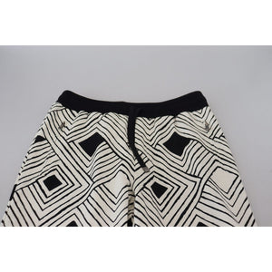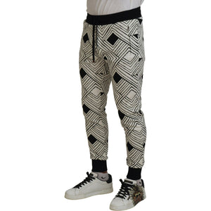 Dolce & Gabbana Black White Cotton Trousers Sport Pants