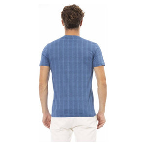 Elevate your style quotient with the Baldinini Trend short sleeve T-shirt that seamlessly blends comfort with avant-garde design. Its pristine cotton fabric ensures a luxurious feel, while the bold front print stamps a statement of contemporary edge. Crafted in MD, this blue tee is a versatile staple for fashion-forward individuals aiming to set trends rather than follow them.