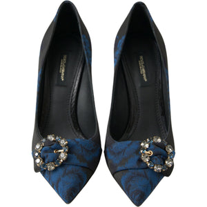 Dolce & Gabbana Blue Floral Ayers Crystal Pumps Shoes