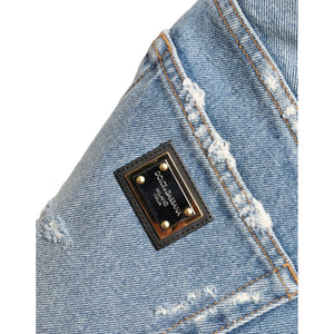Dolce & Gabbana Blue Tattered Embellished Bermuda Shorts