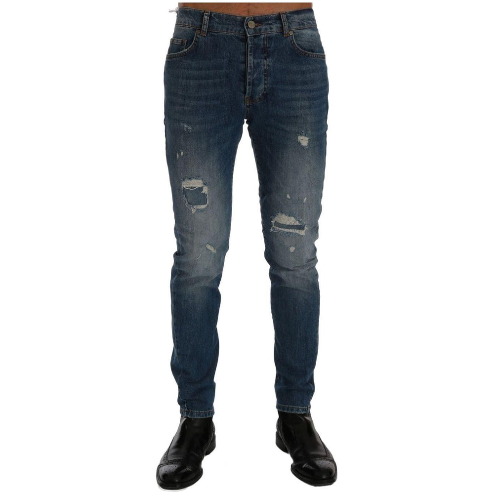• Frankie Morello Blue Wash Torn Dunfermile Slim Fit Jeans