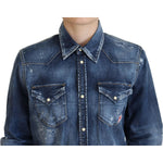 Dsquared² Blue Washed Cotton Button Down Collared Denim Shirt