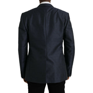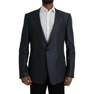 Dolce & Gabbana Blue Wool GOLD Single Breasted Coat Blazer