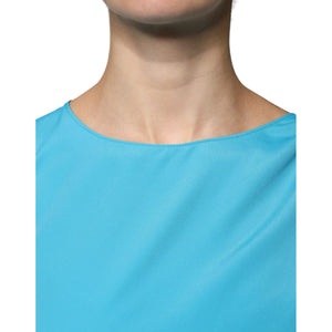 Boutique Moschino Blue Round Neckline Long Sleeves Blouse Top