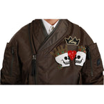 Dolce & Gabbana Brown Beaded Crown Skull Logo Jacket