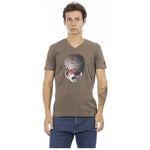 Elevate your wardrobe with the Trussardi Action short sleeve T-shirt, a blend of casual sophistication and modern aesthetics. Crafted with a soft mix of cotton and viscose, this T-shirt boasts a suave brown hue that captivates at first glance. Its V-neck cut and front print design inject an edge into your everyday style. Perfect for those who dare to make a statement with their clothing choices.