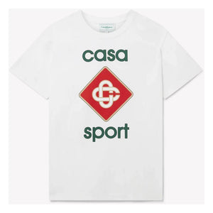Casablanca, 100% cotton crew-neck t-shirt, tennis club casa sport logo screen print, white color, relaxed fit