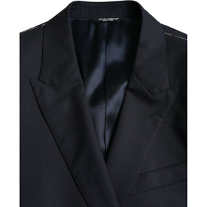 Dolce & Gabbana Dark Blue Wool Single Breasted Coat Blazer