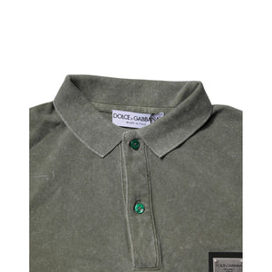 Dolce & Gabbana Army Green Logo Plaque Cotton Polo Shirt T-shirt