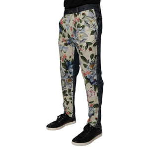 Dolce & Gabbana Beige Blue Floral Cotton Men Denim Jeans