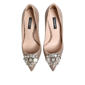 Dolce & Gabbana Beige Leather Crystal Embellished Pumps Shoes