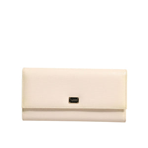 Dolce & Gabbana Beige Leather Trifold Logo Plaque Card Holder Wallet